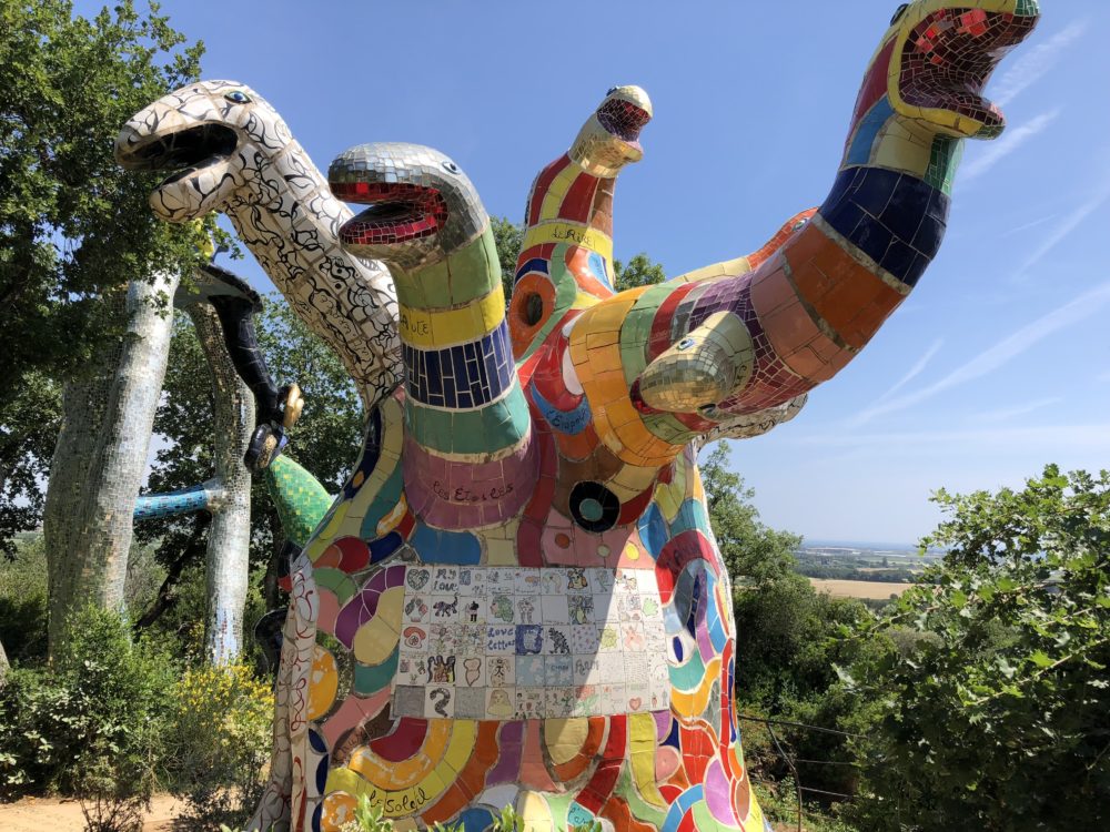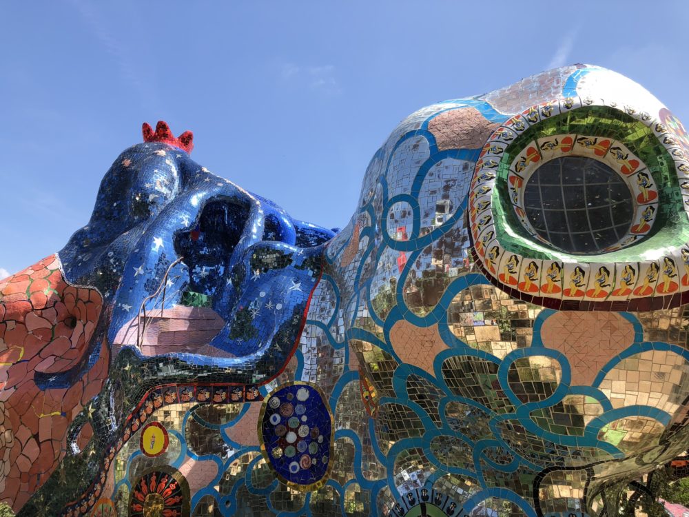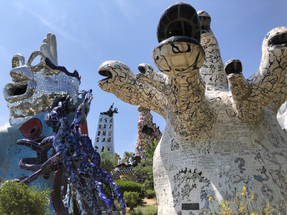 Natürlich besuchen wir auch wieder einmal den grandiosen Tarotgarten von Niki de Saint Phalle in Capalbio. So richtig verrückt, was da die Künstlerin mit ihren Freunden verwirklicht hat. Wir sehen sie im Geist Feste feiern und das Leben geniessen.