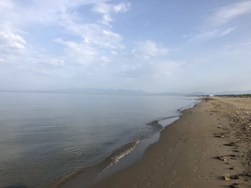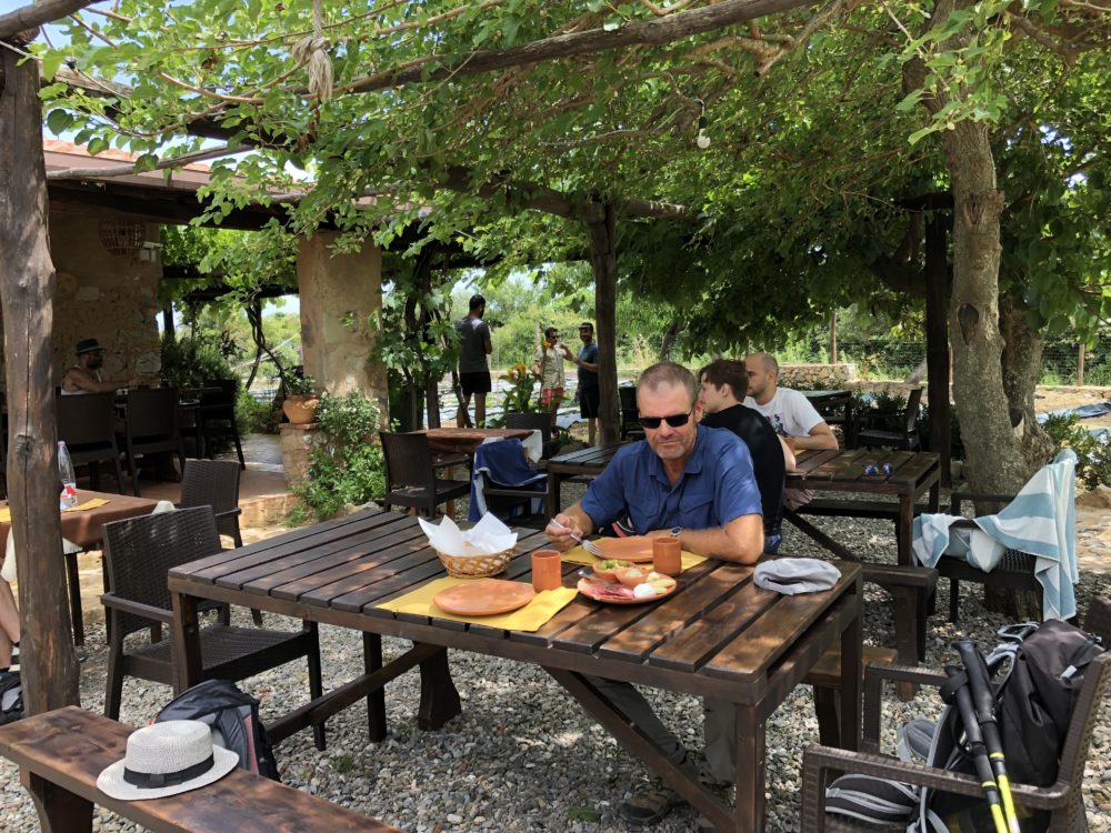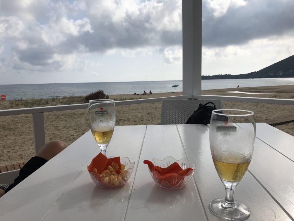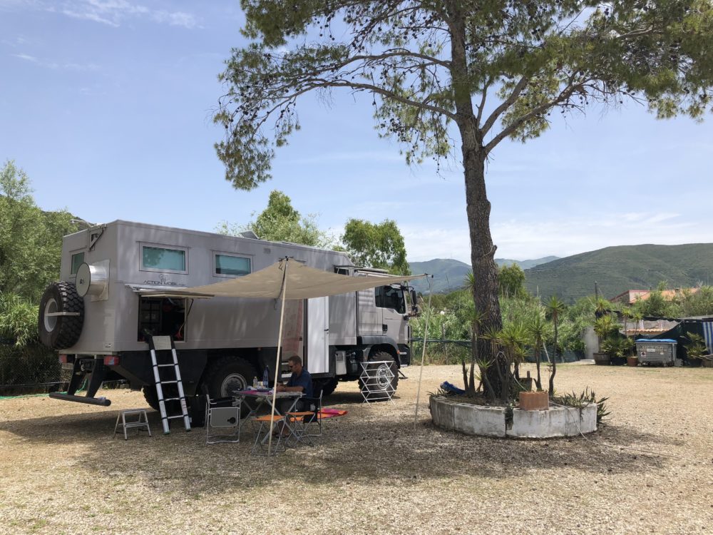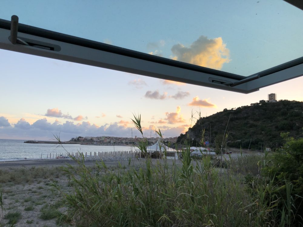 In Oligastro Marina haben wir einen privaten Campingplatz ganz für uns alleine. Der Chef bringt uns einen riesigen Laib frisches Brot aus dem Pizzaofen und selbst gebrauten Schnaps. Dafür will er gerne Fotos von unserem “Dicken” schiessen, in den er sich vom ersten Moment an verliebt hat. Der Strand ist richtig hübsch, keine Bagnos, supertolles klares Wasser und eine nette Strandbar für den Sundowner.