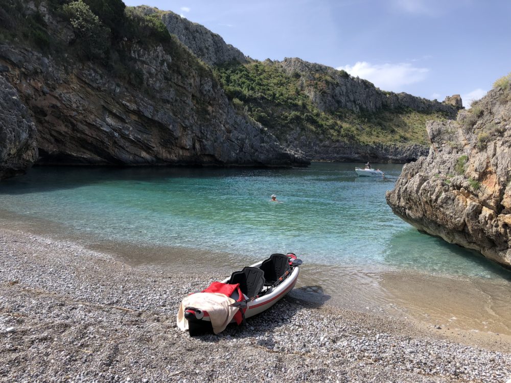Wir wandern am ersten Tag zu einer supertollen Badebucht mit klarem Wasser und bunten Fischen. Offenbar ist diese aber kein Geheimtipp und wird von ganz vielen Bootsgruppen angefahren. Am zweiten Tag pumpen wir unser Kajak auf und unternehmen eine Paddeltour entlang der Steilwandküste und besuchen die vielen blauen Grotten. Natürlich nicht ohne an einer der tollen Strände auch einen Badestopp ein zu legen. Fazit: Dies wird eine unsere Lieblingsgegenden in Italien bleiben!