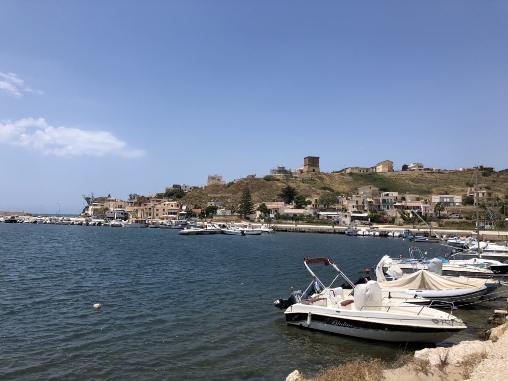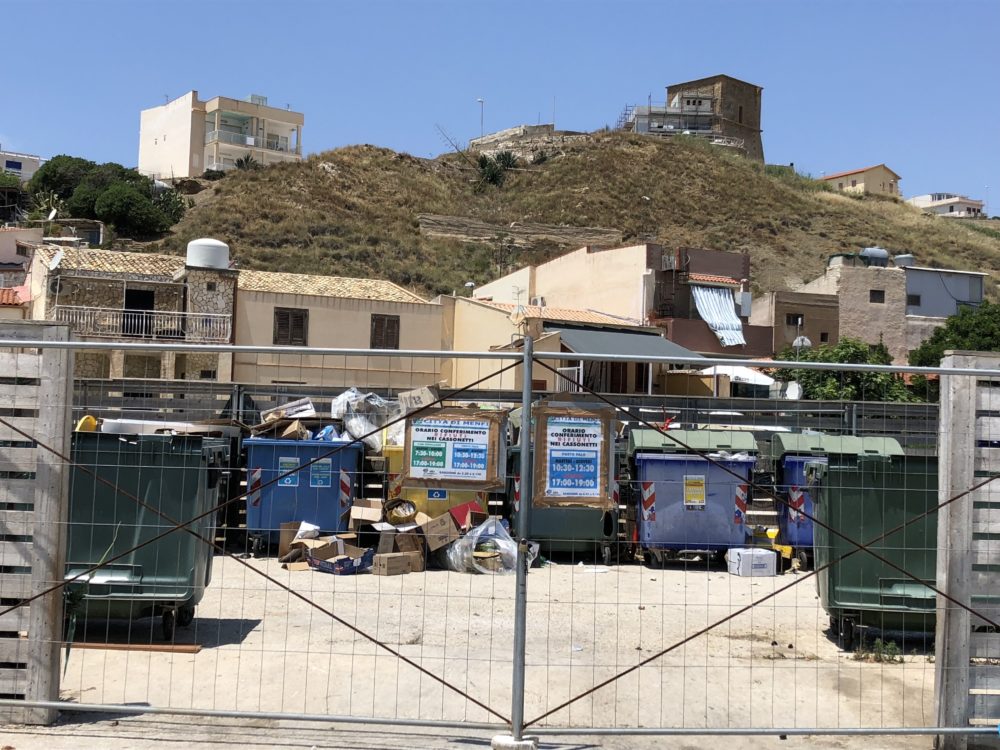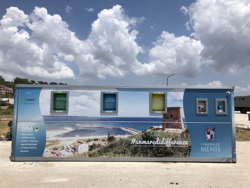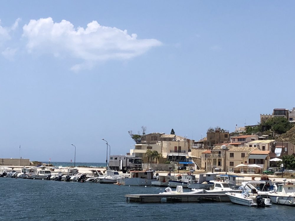 Im Süden von Sizilien müssen wir ziemlich lange fahren, bis wir ein schönes Plätzchen finden. In Porto Palo machen wir Mittagsrast, hier wird ein edler Ferienort aufgebaut mit Hafen, edlen Villen und schönen Restaurants. Sogar die Mülltrennung ist gestylt, leider klappt es mit der Benutzung noch nicht so richtig.