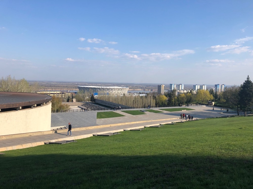 2018 wurde Wolgograd Austragungsort für einige Fußball- WM- Spiele. Das weiße neue Stadion und der neu angelegt Park zeugen davon.