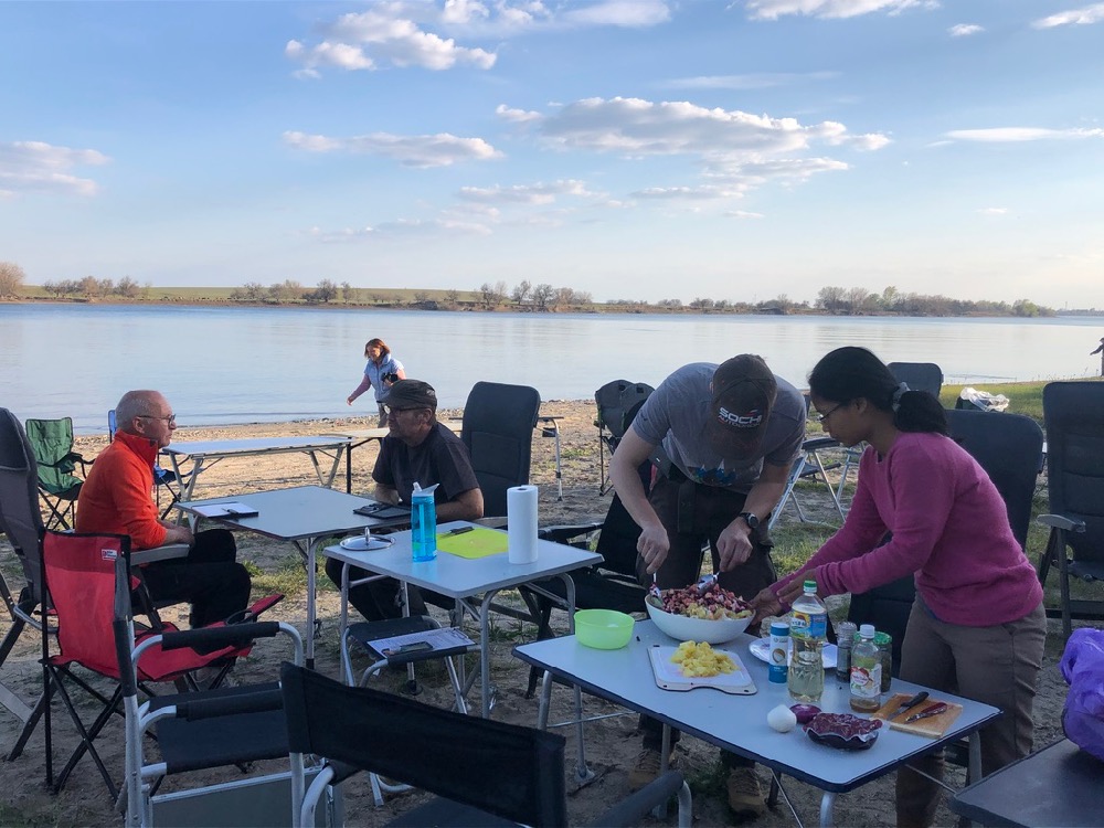 Wegen einem Autoralley, das gleichzeitig zu unserem Overland- Europa- Asien- Australien- Ralley stattfindet, wird unser gebuchter Campingplatz bei einem Hotel abgesagt. Dafür finden wir einen viel schöneren und naturnahen Übernachtungsplatz direkt an der Wolga. Dies ruft natürlich nach einem Lagerfeuer und gemeinsamem Essen. Andrej, unser russischer Allrounder leitet uns in Gruppen zur Herstellung verschiedener russischen Salaten an. Die Männer der Gruppe sägen Feuerholz, betreuen das Feuer und grillieren Pouletspiesse. Der Mond spiegelt sich in der Wolga, Wolgakähne schippern vorbei. Ein letzter toller Abend in Russland!