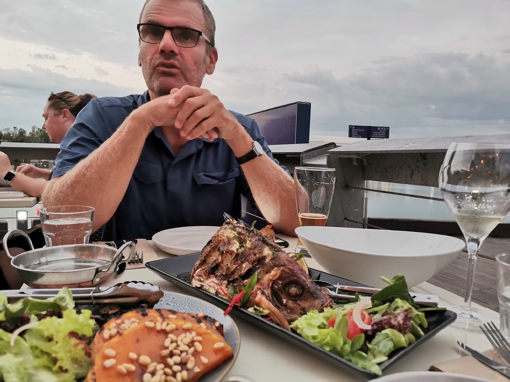 Allmählich haben wir sämtliche Sehenswürdigkeiten von Darwin abgeklappert. Die Lagune mit der neuen Überbauung, das Kunstmuseum, den Botanischen Garten, die Stokes Hill Warft. So bleibt uns nichts mehr übrig, als am Abend die tropische Stimmung der beginnenden Regenzeit zu genießen und die feinen aber leider sehr teuren Restaurants aufzusuchen. Mittlerweile sind auch fast alle Teilnehmer unserer Gruppe eingetroffen und wir genießen noch ein paar schöne Abende und schwelgen in Erinnerungen.